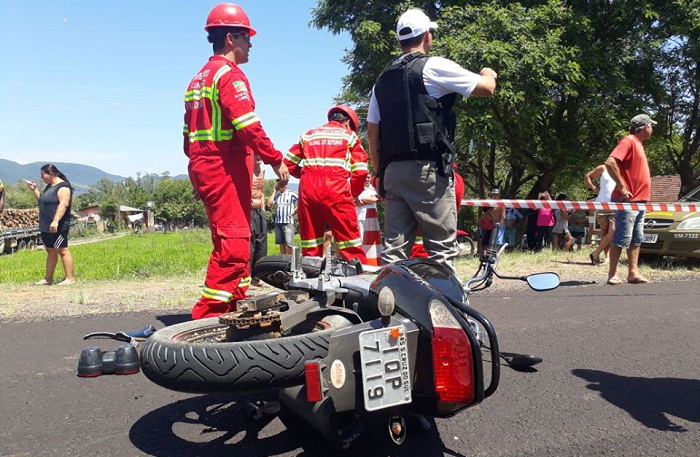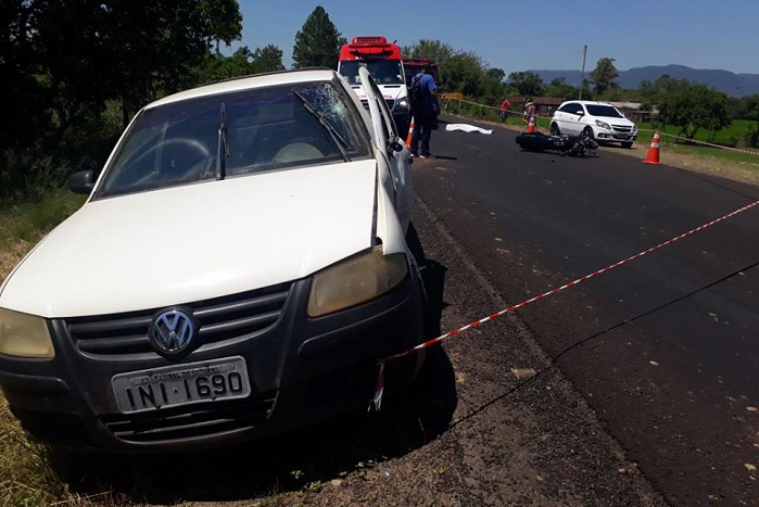 O acidente envolveu uma moto com placas de Santa Cruz do Sul e uma Saveiro com placas de Faxinal do Soturno. Segundo informações da Brigada Militar, a vítima é Joel Faccin, de 41 anos.