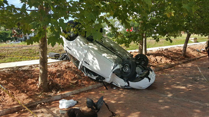 Durante a fuga um dos veículos acabou capotando em frente a empresa Planalto. Dois criminosos que estavam em um dos veículos resgataram o motorista do carro capotado que estava ferido.