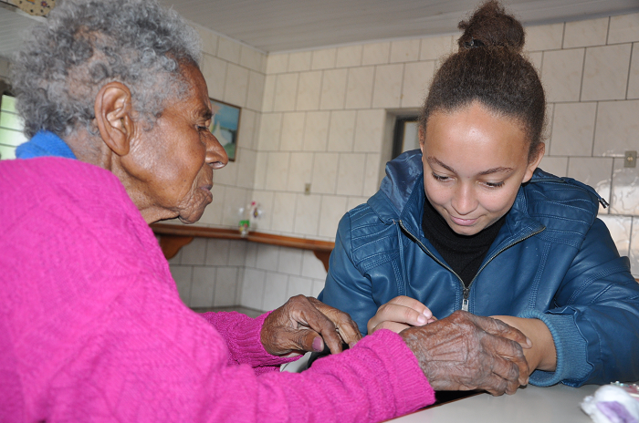 Conhecida pelas servidoras do Lar pela simpatia e bom humor, a moradora Narcisa Bolzan Mônego, 89 anos, pediu esmalte vermelho ao pintar as unhas e disse que não queria cortar o cabelo, porque já estava bonita. Quando uma colega a contrariou, brincando, Narcisa deu uma lição de autoestima: “a gente tem que se gostar exatamente como é”.