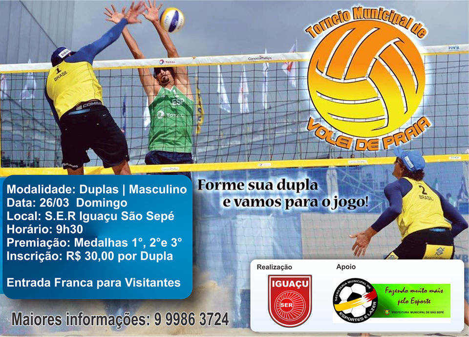 O Clube S.E.R. Iguaçu sedia no próximo domingo, 26, um Torneio Municipal de Vôlei de praia. O evento de encerramento da temporada deve reunir membros de cidades da região e tem apoio da Secretaria Municipal de Esportes e Lazer.