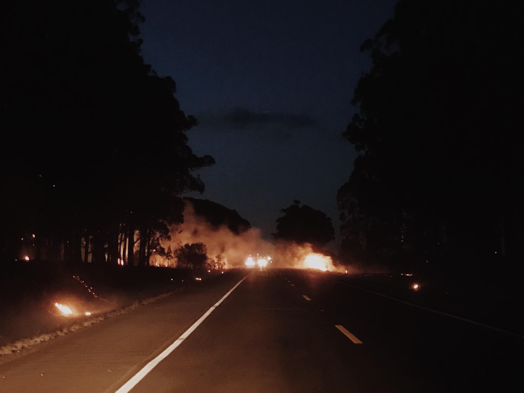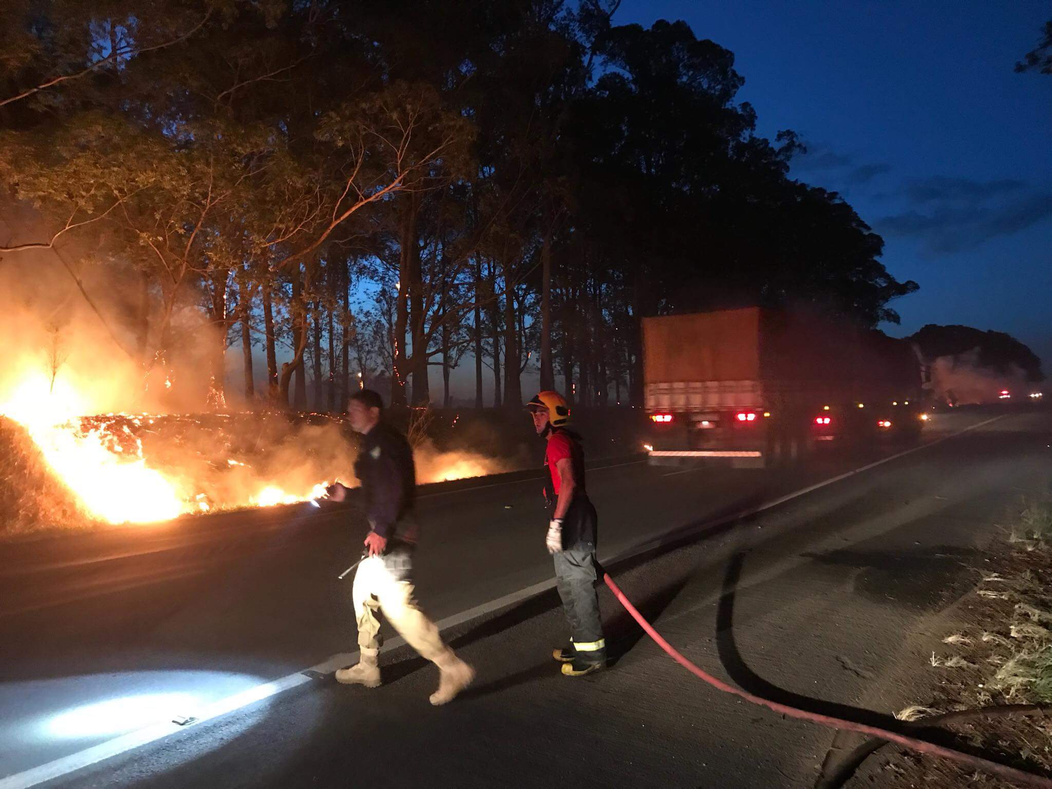 As chamas estavam alastradas e chegaram a atingir parte da pista. Muitos motoristas chegaram a se arriscar e cruzaram em meio à fumaça.