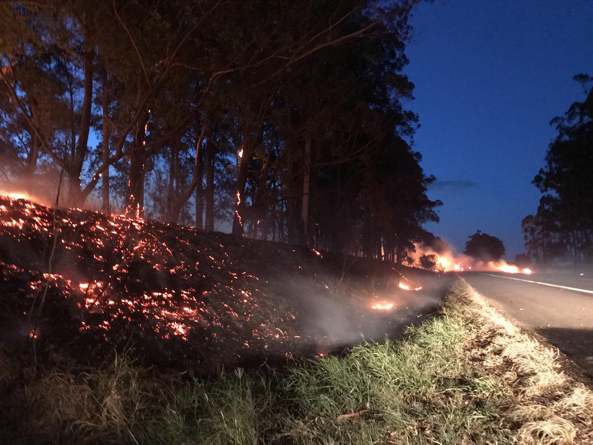 Um incêndio atingiu um campo e um mato de eucaliptos às margens da BR-392, em São Sepé, na noite de quinta-feira, 11. O fato foi registrado nos dois lados da rodovia, nas proximidades da Sanga Funda.