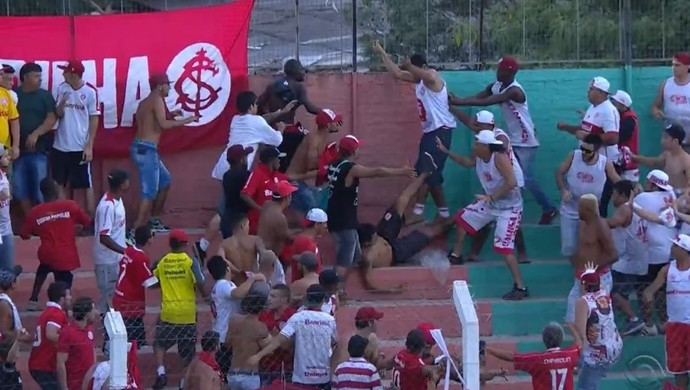 A briga generalizada no espaço destinado à torcida do Inter no Antônio David Farina, em Veranópolis, interrompeu a abertura do Gauchão 2017 ainda no primeiro tempo do duelo. Alguns torcedores trocaram chutes e socos na arquibancada e também arremessaram pedras durante a confusão até a intervenção da Brigada Militar. A confusão deixou pessoas feridas, que receberam atendimento médico ainda no campo.