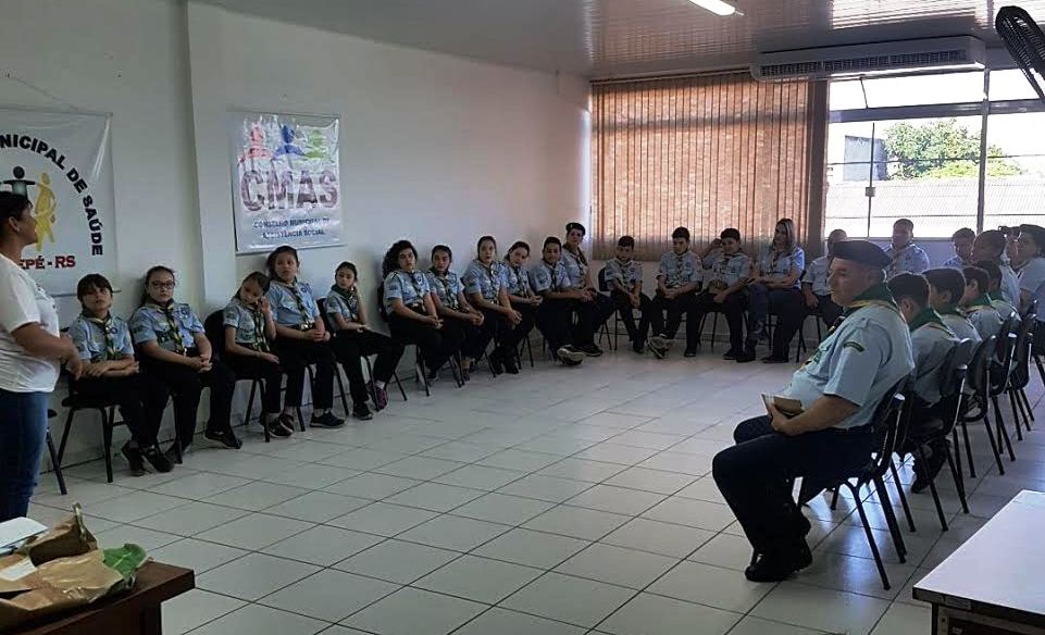 O grupo de escoteiros Guardiões da Pulquéria realizou uma atividade em parceria com a Vigilância Ambiental em Saúde de São Sepé. Eles receberam treinamento e capacitação sobre o combate ao Aedes aegypti.