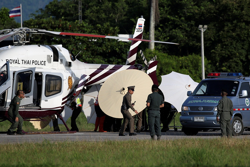 No entorno da montanha, ambulâncias e helicópteros esperam pelos garotos. No domingo, após voltar à superfície os meninos foram para um hospital improvisado, montado perto da gruta, onde passaram pelos primeiros exames físicos. Depois, seguiram para o hospital da província de Chiang Rai.
