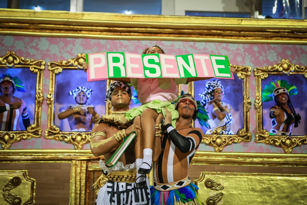 O samba citou Marielle Franco, vereadora do PSOL morta a tiros em março do ano passado. A arquiteta Mônica Benício, viúva de Marielle, o deputado federal Marcelo Freixo (PSOL) e o vereador Tarcísio Motta (PSOL) desfilaram à frente da última ala.