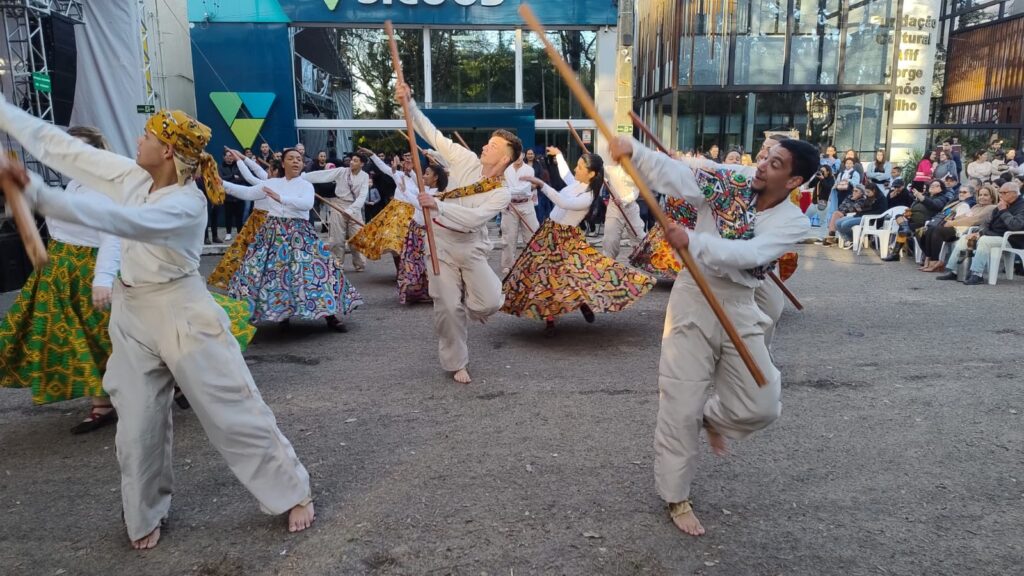 Um dos pontos altos da noite foi o espetáculo Lendas do Sul, que uniu teatro, música e dança para contar mitos e histórias típicas do imaginário sulista, reforçando a identidade cultural de forma lúdica e emocionante.