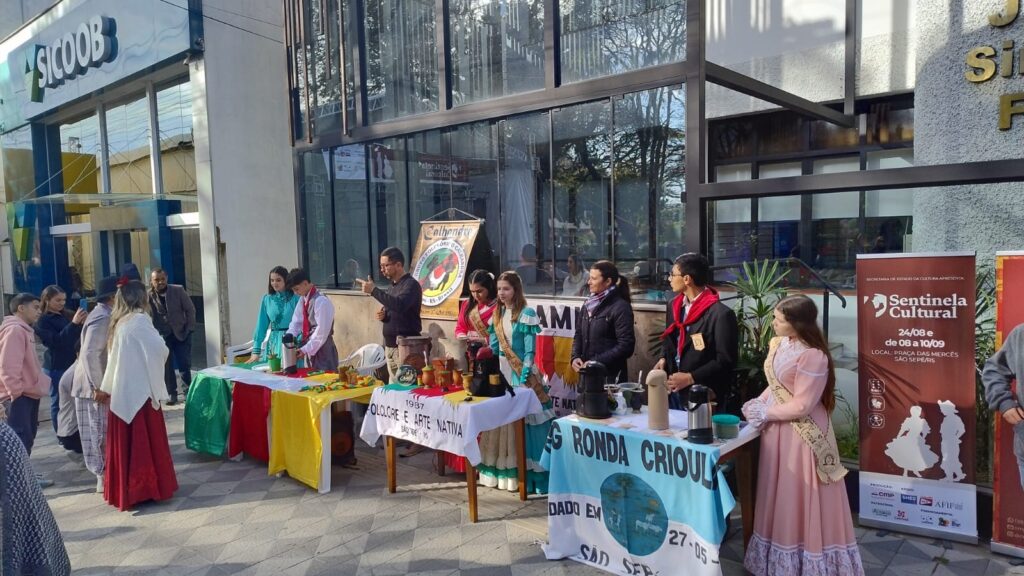 A Praça das Mercês se transformou em um grande palco cultural no último domingo, 24 de agosto, durante a Mateada Cultural, evento gratuito que reuniu centenas de pessoas em uma celebração vibrante da tradição e da arte do Rio Grande do Sul. Integrando o projeto Sentinela Cultural, a programação se estendeu até as 22 horas e encantou o público com música, dança, teatro e momentos de interação cheios de história e identidade.