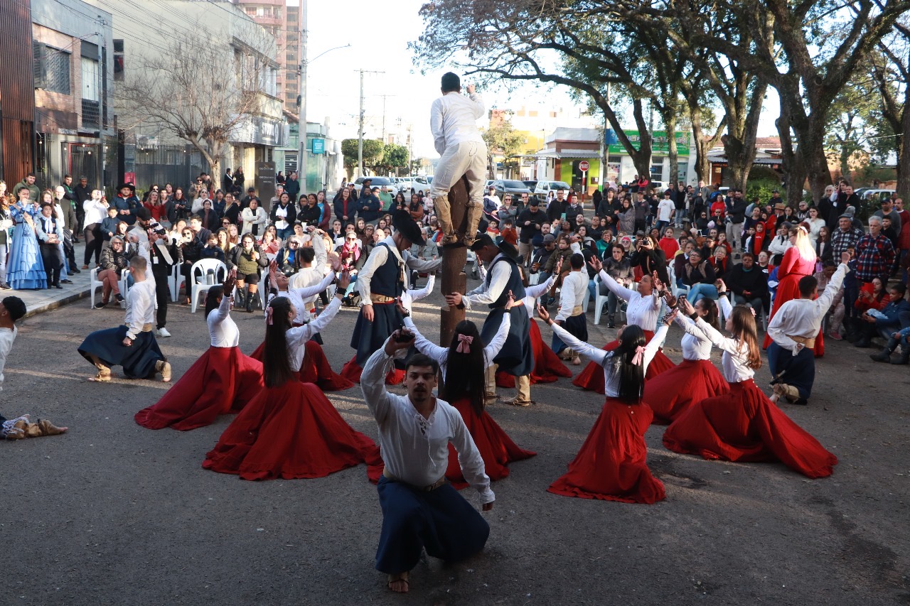 As expressões artísticas também ganharam destaque com a apresentação do Grupo Tio Mino, do CTG Ronda Crioula, que levou ao palco danças tradicionais e coreografias temáticas que exaltam o folclore local e a beleza dos costumes do interior gaúcho.