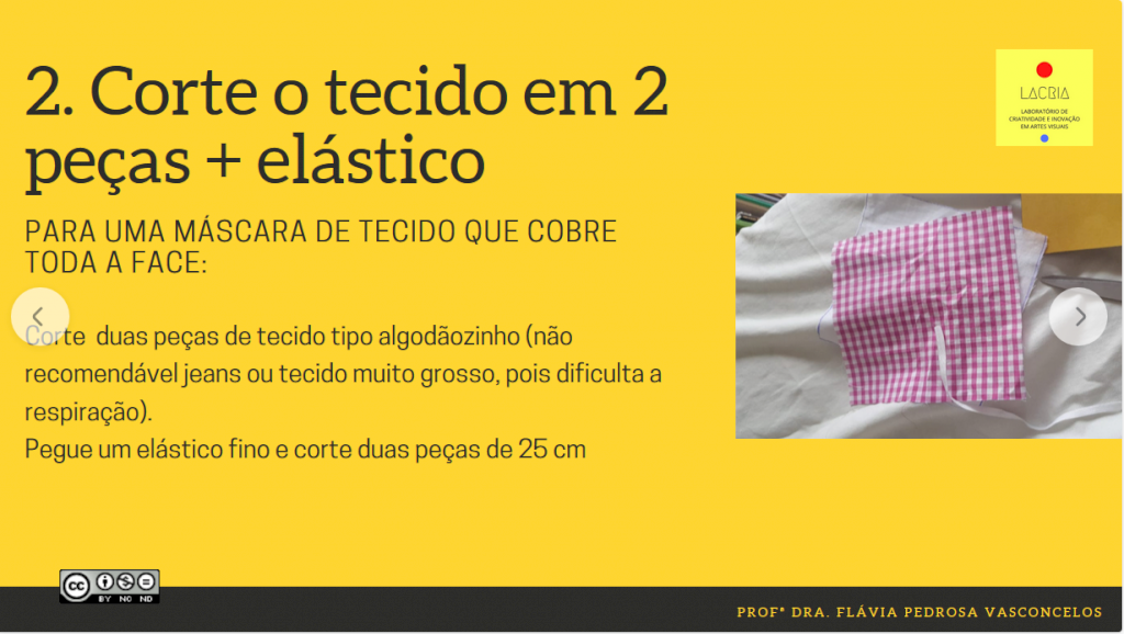 • A máscara deve ser usada por cerca de duas horas. Depois desse tempo, é preciso trocar. Então, o ideal é que cada pessoa tenha pelo menos duas máscaras de pano