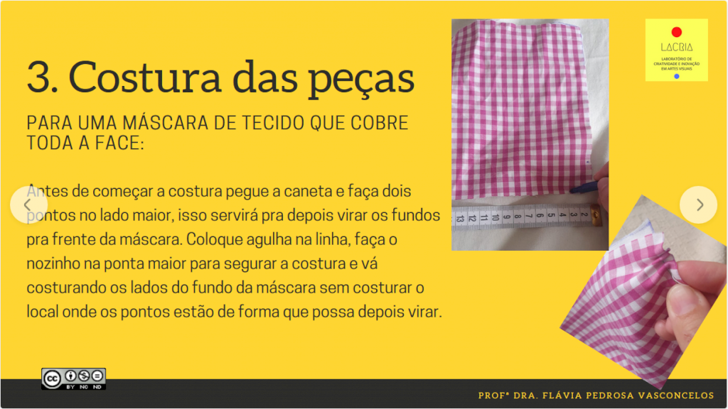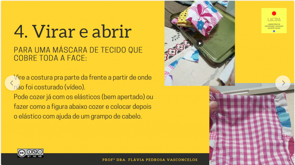 As orientações estimularam produções caseiras como a da professora do curso de Artes Visuais da Universidade Federal de Santa Maria (UFSM) Flávia Pedrosa Vasconcelos, que utilizou das habilidades manuais para auxiliar na prevenção ao coronavírus.