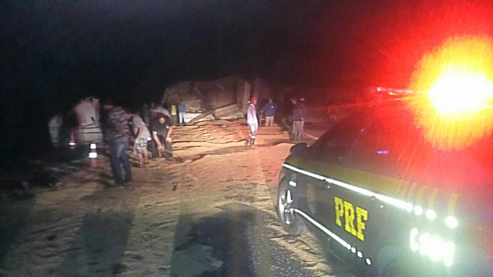 A carga de soja transportada pelo bitrem espalhou-se sobre a rodovia que permaneceu interrompida totalmente até por volta das 5h da madrugada. Os nomes dos envolvidos não foram divulgados pela PRF.