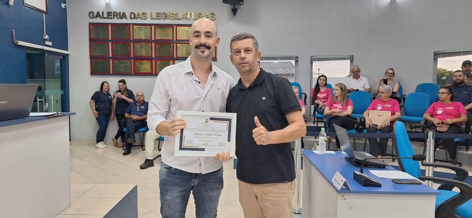 O empresário Tony Gomes Motta, recebeu a moção do Vereador Humberto Stodutto (PSDB), com os votos de parabenização e reconhecimento pela passagem dos 10 anos de fundação da empresa Academia Bella Forma. Para o Vereador é muito importante reconhecer o trabalho de empresários que empreende em nosso município. “Este reconhecimento não é só do Vereador, são de pessoas que frequentam e primam pelo ótimo atendimento e qualidade dos serviços prestados aos usuários da Academia Bella Forma. Estamos sendo um porta vós de clientes que parabenizam junto comigo o ótimo trabalho que é realizado junto a Academia”, finaliza Stoduto.