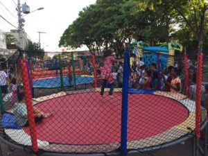 No espaço montado em frente à Fundação Cultural Afif Jorge Simões Filho, as crianças puderam se divertir com brinquedos. Ainda houve a chegada do Papai Noel, que momentos antes percorreu algumas ruas da cidade distribuindo balas e doces para os pequenos.