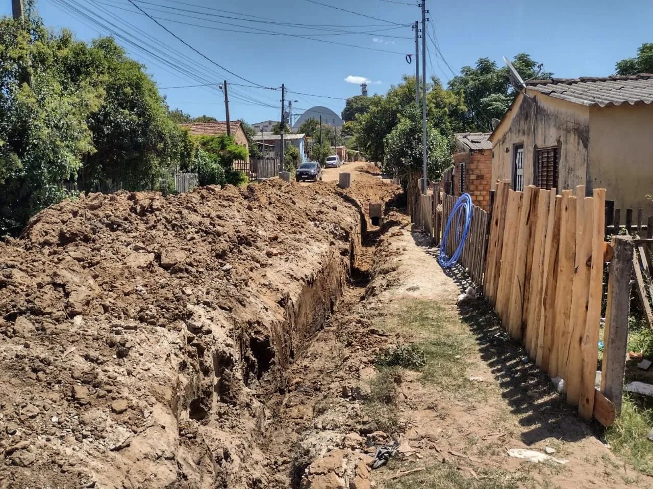 A Secretaria da Infraestrutura de São Sepé segue na construção da rede pluvial de esgoto para captação e escoamento da água da chuva, no Bairro Cristo Rei.