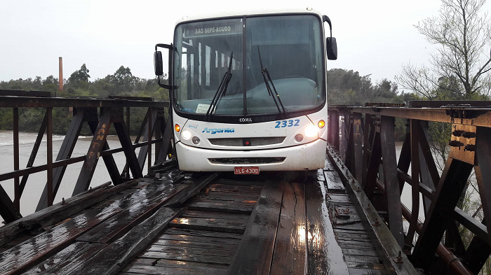 Passageiros de uma empresa de ônibus que fazia a linha São Sepé-Agudo voltaram a sofrer com o descaso na Ponte das Tunas na manhã deste sábado, 12. Por volta das 7h30min, o ônibus da empresa Argenta ficou trancado sobre a estrutura enquanto realizava a travessia entre Formigueiro e Restinga Sêca.