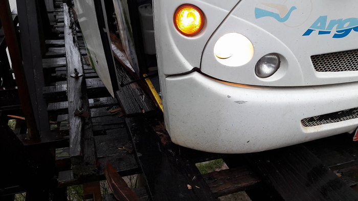 De acordo com relatos de pessoas que passavam pelo local, parte da estrutura de madeira quebrou e o coletivo ficou com uma das rodas trancadas, impedindo que a viagem fosse retomada. O fato revoltou o motorista da empresa que teme que algo pior aconteça na ponte, caso uma providência não seja tomada.