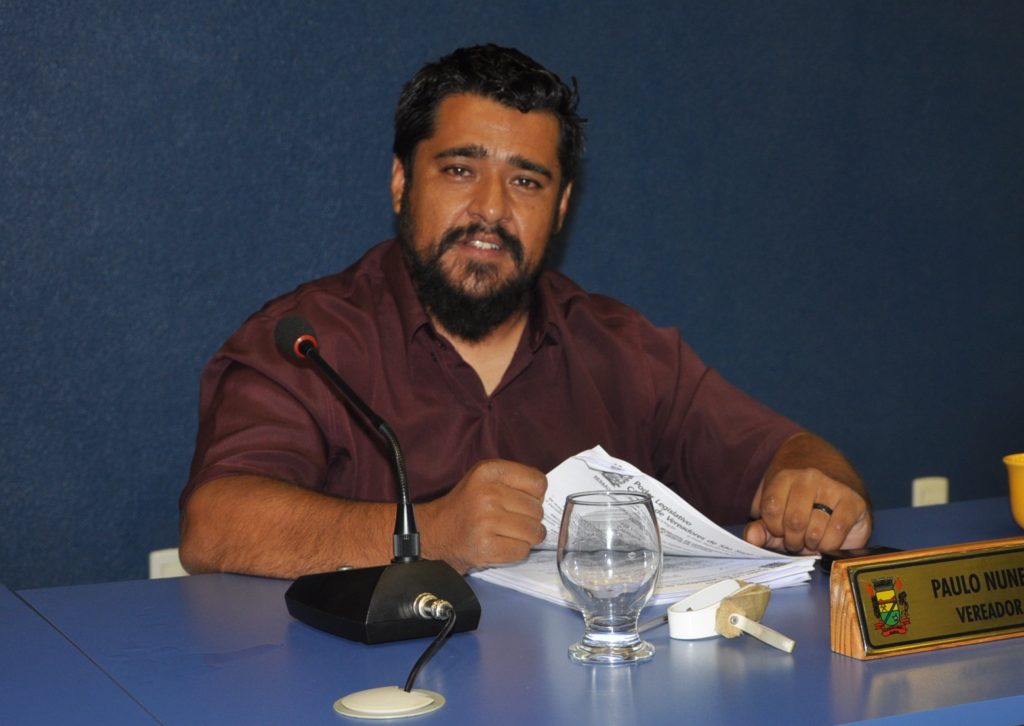 Paulo Getúlio Domingues Nunes tem 35 anos, é cadeirante e está em seu segundo mandato como vereador. Atualmente ocupa o cargo de secretário na Câmara.
