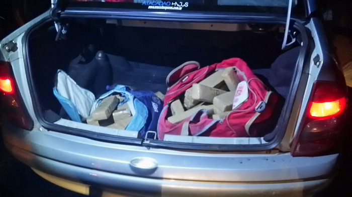 O motorista do veículo confessou que transportava a maconha, mas nenhum dos abordados disse para quem seria entregue a droga. No total foram apreendidos 35,1 kg de maconha, distribuídos em 42 tijolos. A droga estava no porta-malas do automóvel.