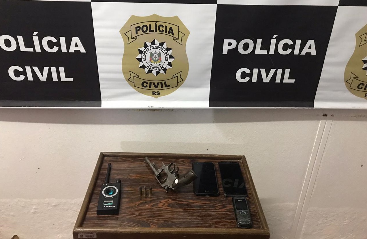 Com eles foi apreendido um revólver municiado, calibre .32; e, um rastreador de sinal GPS. Um quarto homem, de 34 anos, que era o motorista do veículo também foi preso em flagrante.