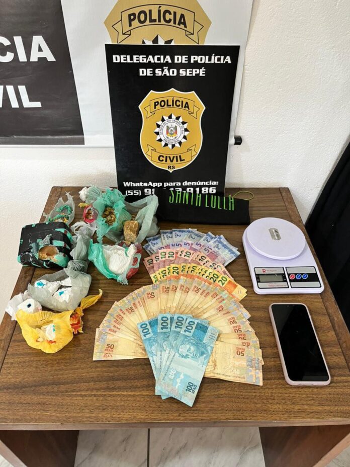 Na tarde desta sexta-feira, 17 de abril de 2026, a Polícia Civil, por meio da Delegacia de Polícia de São Sepé, prendeu em flagrante uma mulher de 31 anos no bairro Londero, após o recebimento de denúncia anônima informando que a suspeita teria recebido grande quantidade de entorpecentes e estaria realizando o fracionamento e a distribuição da droga.