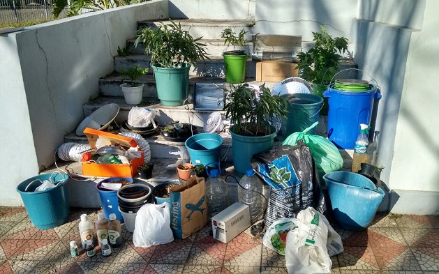No local também foram encontrados vários materiais utilizados para o cultivo da planta como estufas, substratos, exaustor, luminárias e outros.