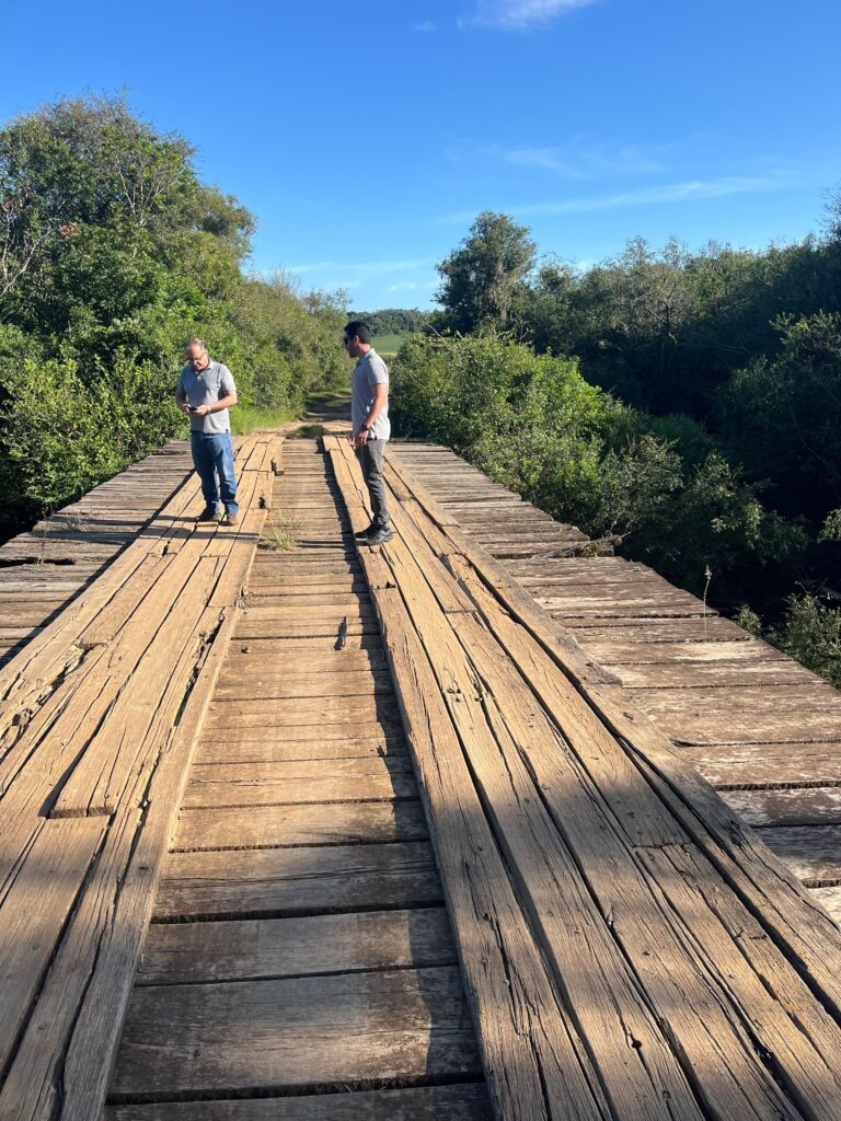 Presentes nessa vistoria, também estavam secretários, engenheiros, arquitetos e demais responsáveis pela averiguação. Na oportunidade foi constatado que a referida ponte está sem condições estruturais para passagem de tráfego de carga pesada, pois os pilares, vigas e tablado de madeira estão sem capacidade de suporte devido à deterioração ao longo do tempo.