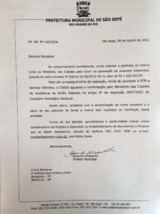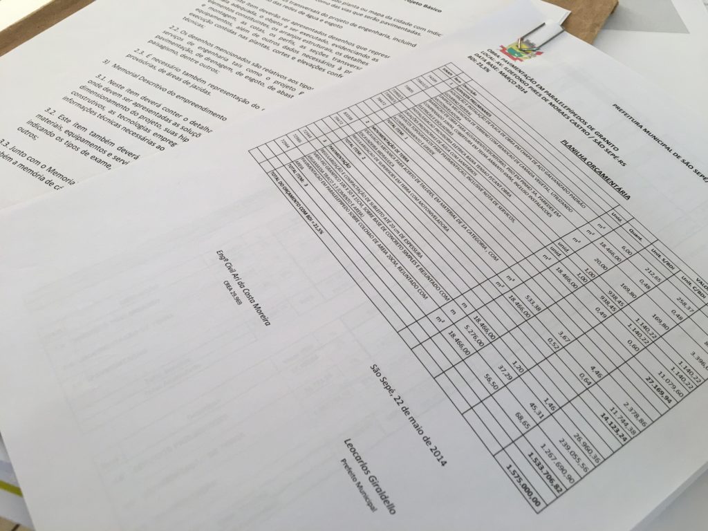 “Como o recurso era bastante abaixo do previsto, foi necessário refazer o projeto para pavimento de paralelepípedo. A prefeitura enviou o projeto técnico para o Governo Federal que até hoje não destinou o recurso aos cofres municipais. O contingenciamento e a crise, de acordo com as informações fornecidas pelo órgão, está ligado aos limites do programa”, cita o documento.