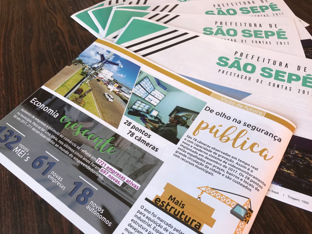 Pelo quarto ano consecutivo a Prefeitura de São Sepé coloca em circulação um informativo sobre as atividades do poder público municipal. A distribuição do material faz parte de um pacote de medidas adotadas pelo Executivo Municipal com a finalidade de aumentar a transparência do trabalho junto da população.