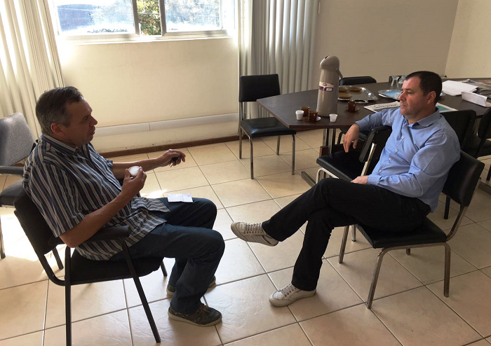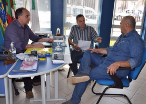 O presidente da Associação de Produtores Rurais da Vila Block, Glenio Campos, esteve reunido na manhã desta quinta-feira, 24, com o prefeito em exercício, Kéio Santos, com o presidente da Câmara de Vereadores, Eto Vargas, e com o coordenador de Cidades, Altamir de Souza.