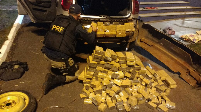 A Polícia Rodoviária Federal (PRF) apreendeu 134 kg de maconha na madrugada desta terça-feira, 11, na BR-158 em Santana do Livramento.