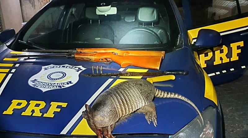 Na noite de quarta-feira, 13, na BR-153 em Caçapava do Sul, a Polícia Rodoviária Federal prendeu dois homens por crime ambiental e porte ilegal de arma. Com eles havia um tatu morto e armas de fogo.