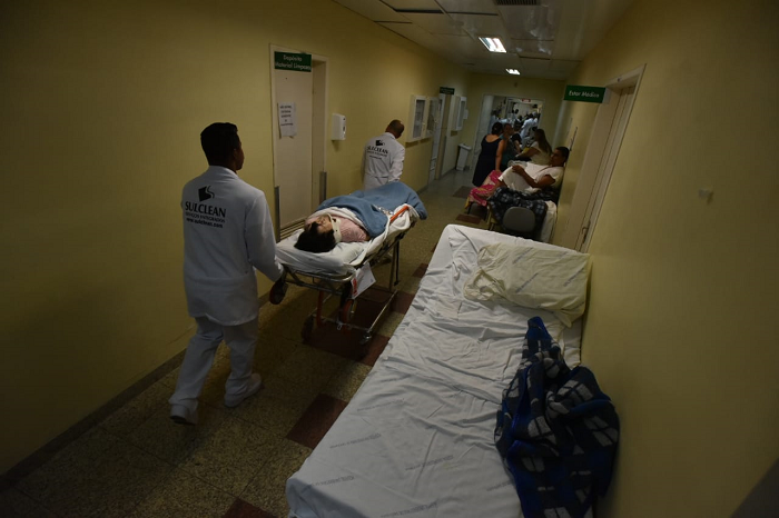 “O Pronto-Socorro está sempre superlotado. São 23 leitos e os demais ficam em macas. Geralmente ficam uns 40 pacientes só em macas de ambulância”, explica Rosângela Marques Machado, chefe do Pronto-Socorro.