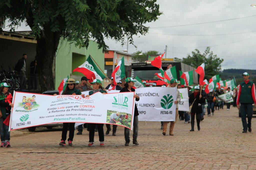 Centenas de produtores rurais de São Sepé e de cidades da região realizaram nesta quarta-feira, 26, atos de protesto contra a Reforma da Previdência (PEC 287), proposta pelo Governo Federal. O grupo se concentrou no acesso ao município sepeense e depois partiu em caminhada pelas ruas centrais da cidade.