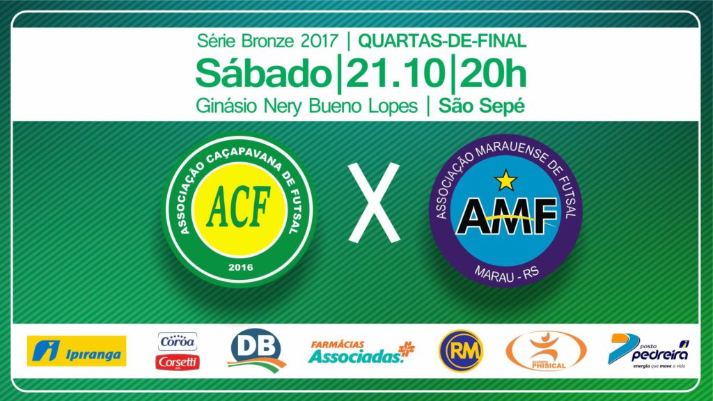 São Sepé sedia neste sábado, 21, jogo válido pelas quartas de final da Série Bronze do Gaúcho  de Futsal. A disputa entre ACF, de Caçapava do Sul, e AMF, de Marau, inicia às 20h no Ginásio Municipal de Esportes.