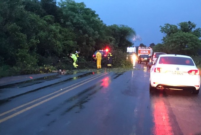 Segundo o jornalista Daniel Miranda, na BR-290 em Caçapava do Sul, perto do posto Laranjeiras, uma queda de árvore está deixando o trânsito lento. “A PRF está no local tentando tirar as árvores, mas em virtude da chuva forte o trabalho está complicado. Este fato deixou a rodovia em meia pista e um grande congestionamento está formado, portanto, quem está indo para Porto Alegre agora a noite deve tomar cuidado porque do Km 276 ao Km 280 são muitas árvores na pista, principalmente do lado direito da pista”, relatou o jornalista que por volta das 19h30min estava na rodovia e passou as informações pelo WhatsApp.