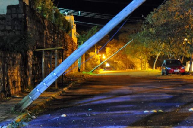 Também houve quedas de postes de luz que deixaram parte da cidade às escuras. Na Avenida Maurício Sirostsky Sobrinho, quase em frente ao PA do Patronato, postes estão pendurados pelos fios. Equipes da RGE Sul trabalham no restabelecimento da rede elétrica.