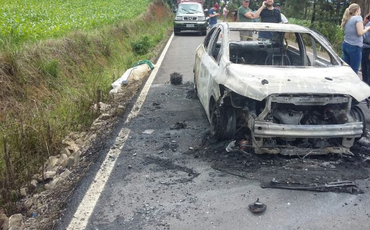 Na fuga, os bandidos levaram três reféns. No caminho, abandonaram o carro que foi encontrado em chamas com o corpo da vítima ao lado.