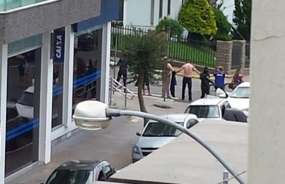 O vídeo abaixo mostra o momento em que os criminosos fazem um “cordão humano”