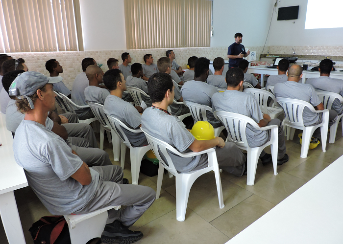 Dentre os itens apresentados aos futuros trabalhadores, estão as orientações sobre sinalização de segurança, EPC – EPI (finalidade, uso correto, guarda, higienização, manutenção, trocas), prevenção de incêndios e as seguintes normas: