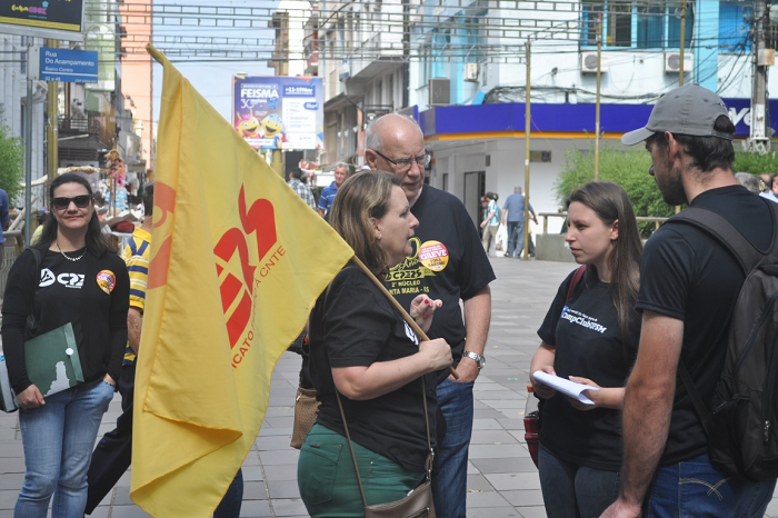 Salário atrasa, de novo, e educadores estaduais protestam no Centro de Santa Maria