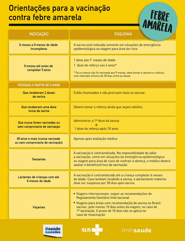 O Centro Estadual de Vigilância em Saúde (Cevs/RS) emitiu um alerta epidemiológico sobre a Febre Amarela, com recomendações aos municípios gaúchos. O documento traz orientações de controle da presença do vírus e de atualização vacinal da população sem vacina ou com esquema incompleto. Orienta também para a imunização de pessoas que vão viajar para regiões silvestres, rurais ou de mata, dentro de áreas com recomendação de vacinação e/ou circulação do vírus amarílico.