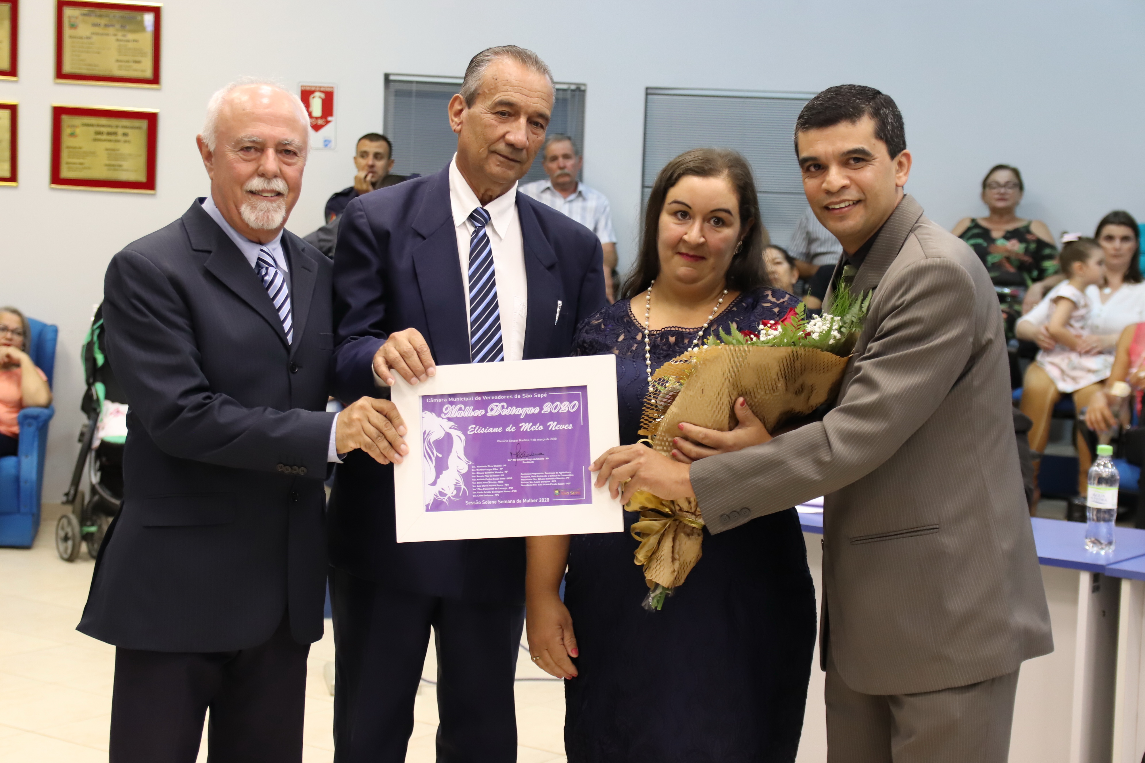 Em comemoração ao Dia Internacional da Mulher, celebrado dia 8 de março, a Câmara de São Sepé homenageou na noite de quarta-feira, 11, cinco “Mulheres de Destaque” com uma placa alusiva à data e um buquê de rosas, destacando a importância da mulher no contexto social e comunitário.
