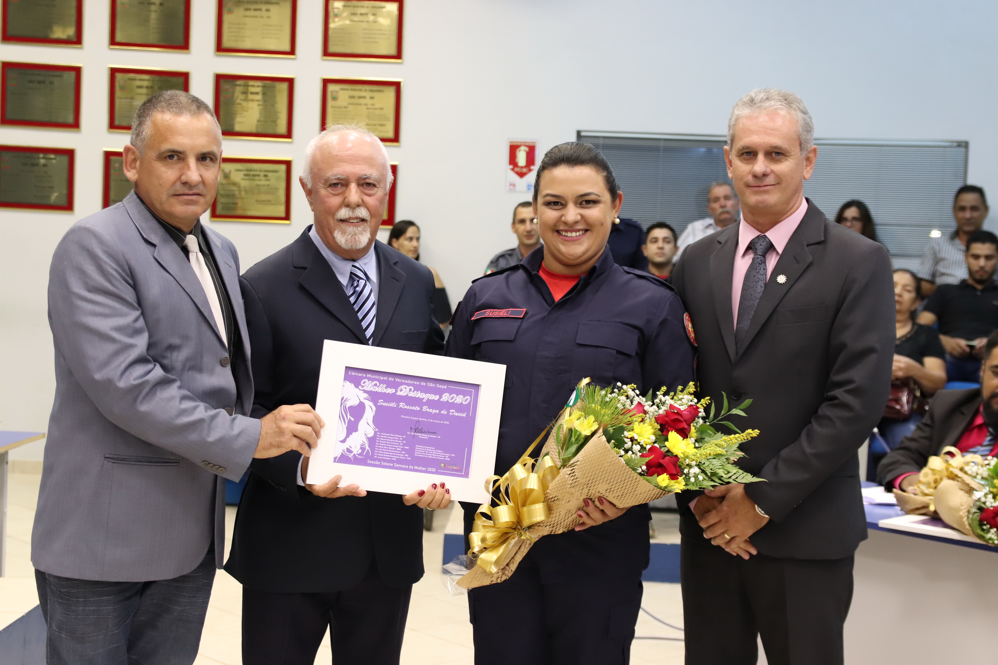 A indicada pela Comissão de Segurança Pública foi a soldada Susiéli Rossato Braga de David. Ela é pós-graduada na área de Educação Física e atualmente soldado do 3º Grupamento de Bombeiro Militar de São Sepé. Susiéli foi indicada pela comissão que é presidida pelo vereador Luiz Otávio Picada Gazen, relator Renato Rosso e secretário Elcio Teixeira.