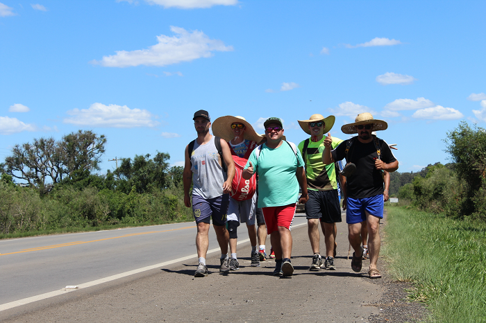Fefeu conta que este é o terceiro ano que sai a pé de São Sepé para participar da Romaria da Medianeira. Alguns membros do grupo foram para pedir e outros para pagar promessas.