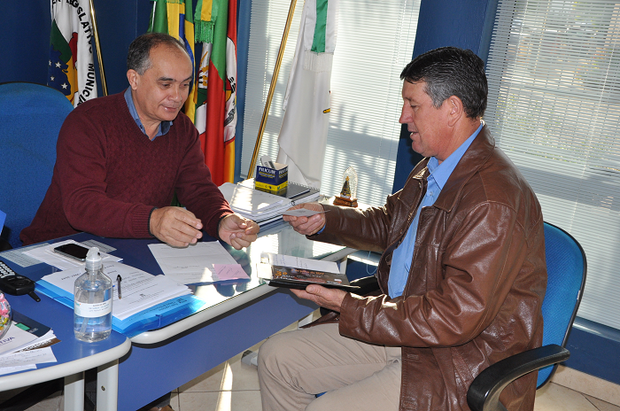 O Presidente da Câmara de Vereadores, Eto Vargas (PP), recebeu, na manhã desta terça-feira, 27, o ex-presidente da Associação de Vitivinicultura de São Sepé, Leonardo Schaf. Leonardo, hoje membro da Associação, fez um convite ao chefe do Poder Legislativo para o 3º Jantar da Uva em São Sepé. O evento será dia 7 de julho, às 20h, no Salão Paroquial.