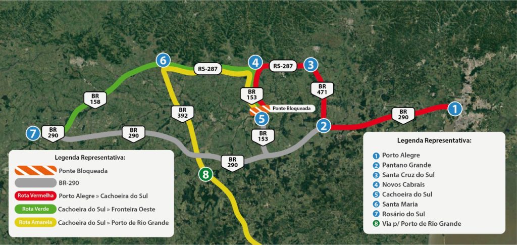 Cachoeira – Porto de Rio Grande: Quem sai de Cachoeira do Sul e vai para o Porto de Rio Grande deve ir até Santa Maria e pegar a BR-392.
