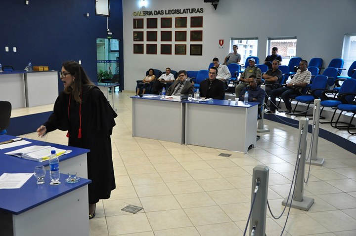 Por volta das 11h15min o Ministério Público assumiu os trabalhos. A Promotora apontou os fatos e mostrou a faca que teria sido usada no crime, apreendida na época pela polícia. O MP sustenta que há dois delitos no mesmo fato: crime doloso contra a vida e resistência à abordagem policial.