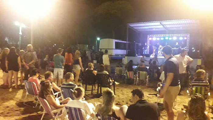 Com temperatura agradável para a época, 28ºC, o Balneário Passo das Tunas recebeu na noite de sábado, 5, a sua primeira atração no ano. Mais de 300 pessoas curtiram o show da Banda Tock Fandagueiro. Com repertório variado, a areia virou palco para a diversão dos veranistas.