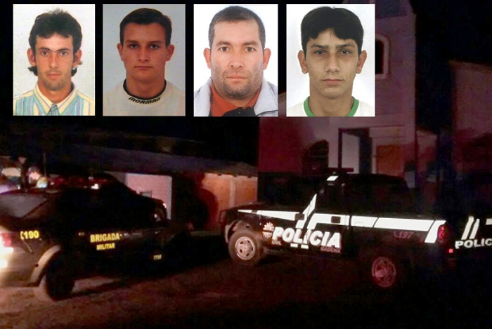 Três vítimas foram mortas a facadas e tiros e outra a facadas. Os mortos foram identificados como Vilson da Silveira, de 39 anos; Eldo Quoos, de 33; Ivo de Oliveira, 38; e Fernando Nelson Vargas da Rosa, de 25 anos.